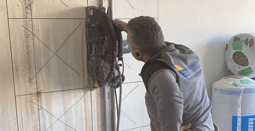 Waar mogelijk nat boren/zagen met opvang; minder stof en slurry keurig afgevoerd.